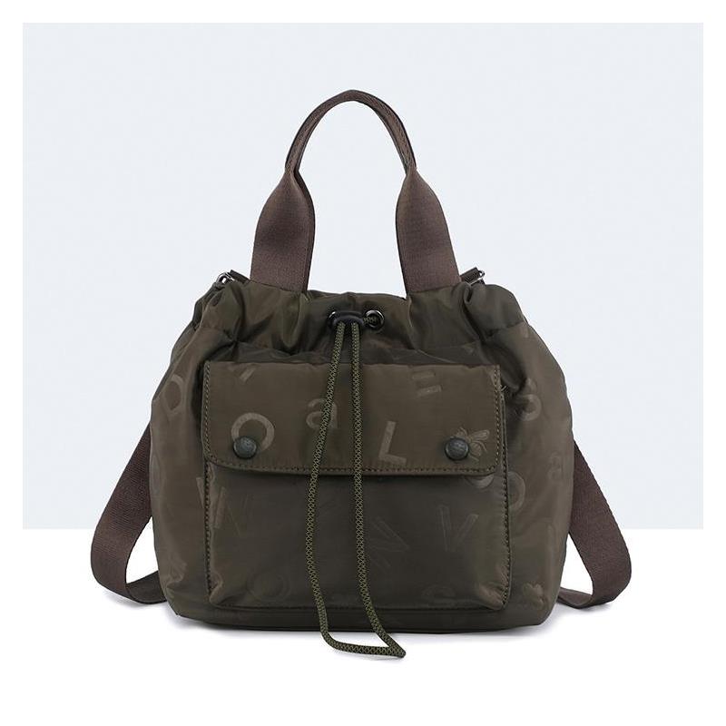 Bolso en nylon con detalle de letras y cordón ajustable. Cierre mediante cremallera. Bolsillo interior y exterior con cremallera.