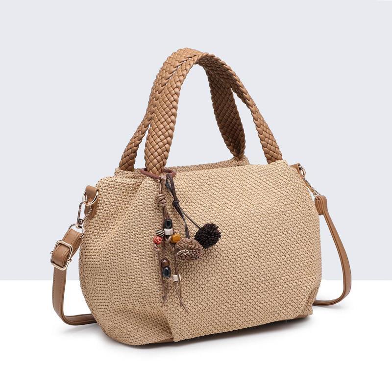Bolso combinado con doble asa corta y asa larga ajustable y extraíble. Detalle de colgador. Cierre mediante cremallera. Bolsillo interior con cremallera.