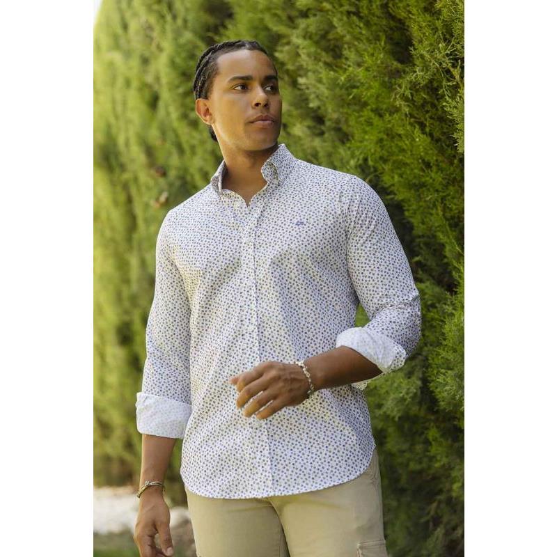 Camisa en patrón regular de la firma Carlos Cordoba con estampado liberty. Botón en el cuello.