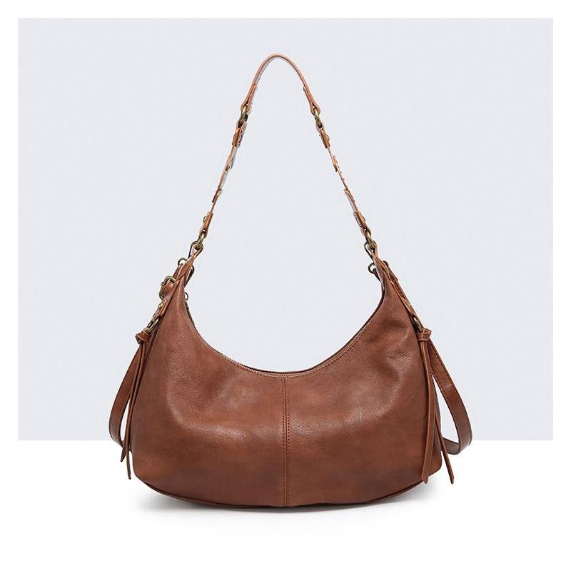 Bolso de hombro con asa larga ajustable y extraíble. Detalle de tachas en oro envejecido. Cierre mediante cremallera. Bolsillo exterior con cremallera.