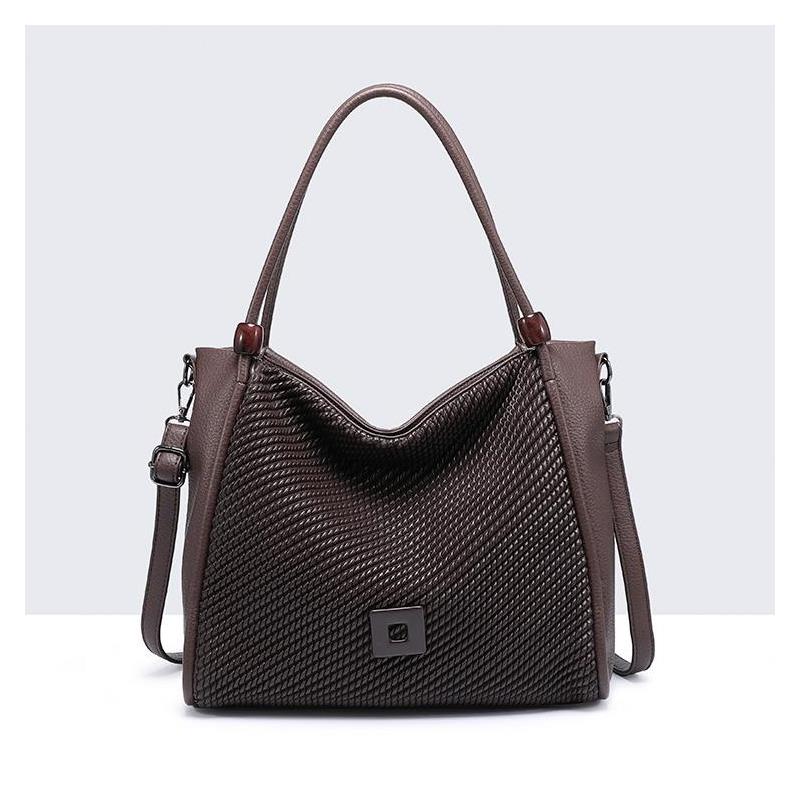 Bolso tipo shopper con doble asa al hombro. Tejido con estructura trenzada en la parte frontal. Asa larga ajustable y extraíble. Cierre mediante cremallera. Bolsillo exterior con cremallera.