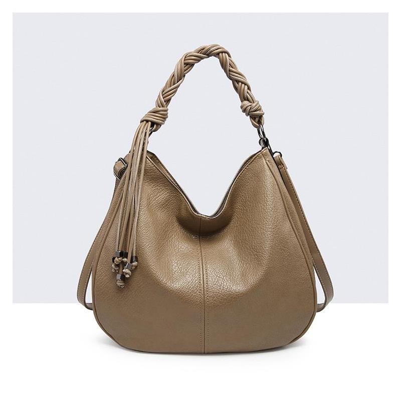 Bolso tipo saca con asa de hombro trenzada y detalle de colgador. Asa larga ajustable y extraíble. Cierre mediante cremaller. Bolsillo exterior con cremallera.