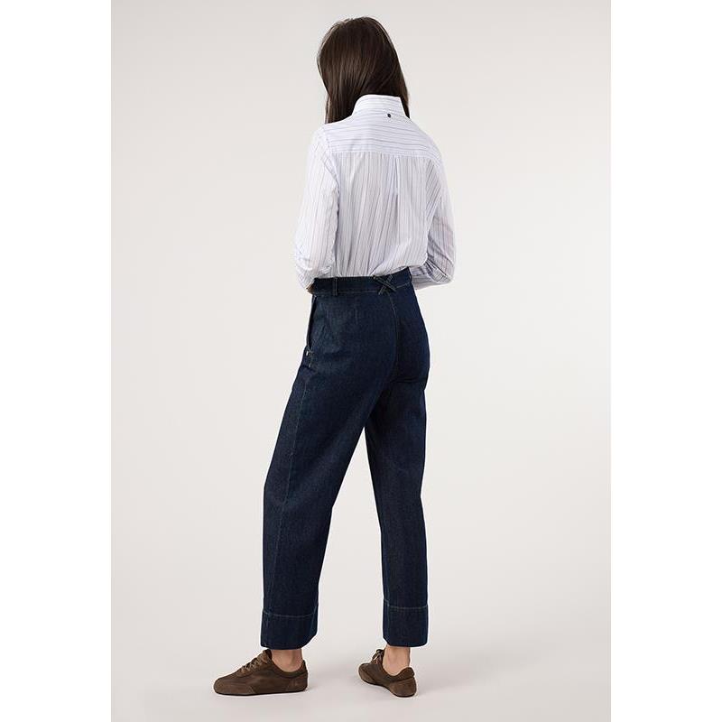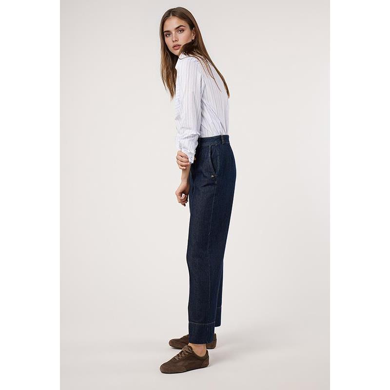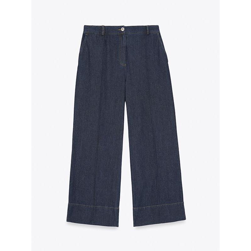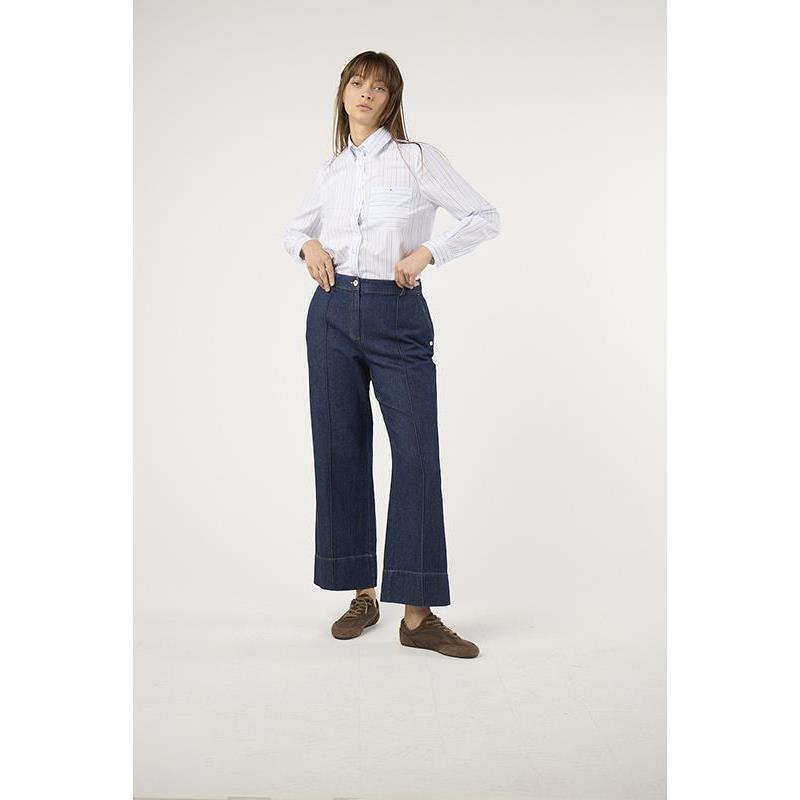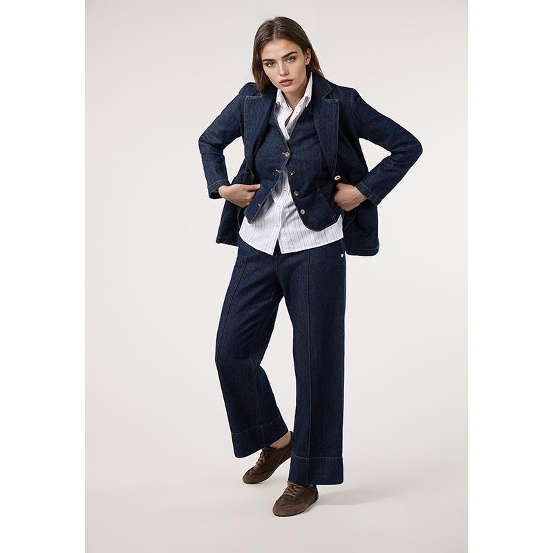 Pantalón denim con costuras a contraste. Cierre delantero mediante botón y cremallera. Consigue un total look con la Blazer Denim.
